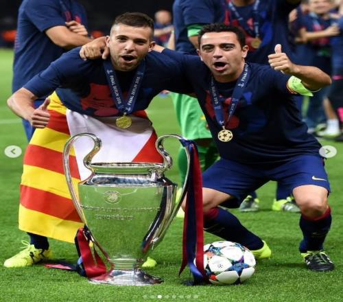 在阿尔巴宣布赛季末退役后,哈维在社交媒体晒图并发文向其致敬。