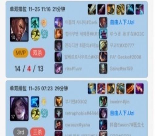 体育资讯11月29日称 根据排位统计小程序显示,Uzi在25日之后就未登上韩服账号。